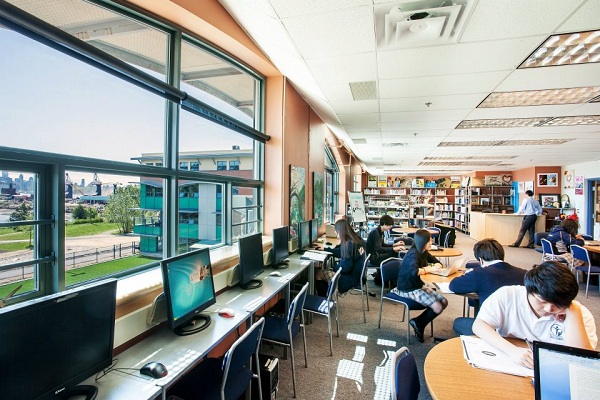 - Khuôn viên nổi bật với 2 căn tin, hồ bơi trong nhà, 2 phòng tập đa năng, 2 rạp chiếu phim và sân khấu thuyết trình, phòng nhạc, thư viện và sân chơi