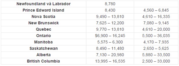 Mặc dù học phí thấp nhưng bạn hoàn toàn yên tâm về chất lượng giáo dục và đào tạo ở Canada. Tuy nhiên học phí cũng có thể thay đổi hàng năm và sẽ được thông báo, cập nhật trên trang web của trường. Sau đây là bảng thống kê tham khảo về học phí du học Canada trong 1 năm tại các thành phố khác nhau (đơn vị tính: CAD – Đô la Canada):
