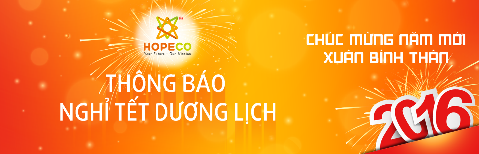 Nhân dịp chào mừng tết Dương lịch 2016, DU HỌC HOPECO (HOPE EDUCATION) trân trọng thông báo đến các Quý đối tác, Quý phụ huynh và các em học sinh lịch nghỉ tết Dương lịch như sau: